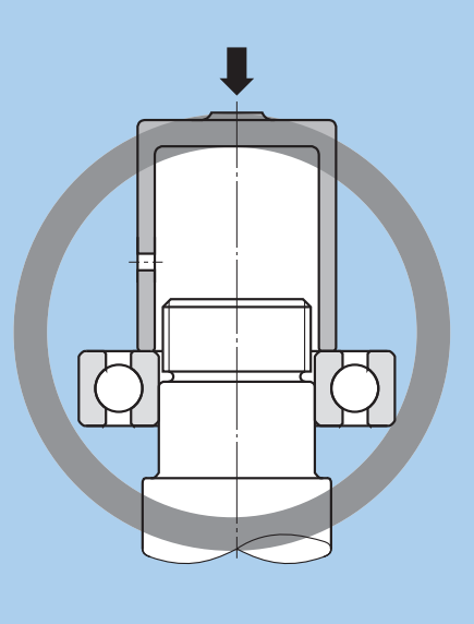 如上圖所示,如果使用榔頭或錘子,把軸承硬敲進去,顯然是不行的,很明顯會損傷軸承的結(jié)構(gòu),甚至直接在安裝時就把軸承報廢掉了,正確的做法是通過壓力,將軸承緩慢壓入。