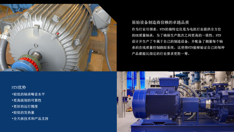 之所以NTN在電機領域近幾十年來一直是原始設備制造商的首選。從小型、低馬力應用到大型風力渦輪機,再到齒輪箱,NTN為世界提供一流的技術支持和滿足任何設計要求所需的廣泛產品范圍。