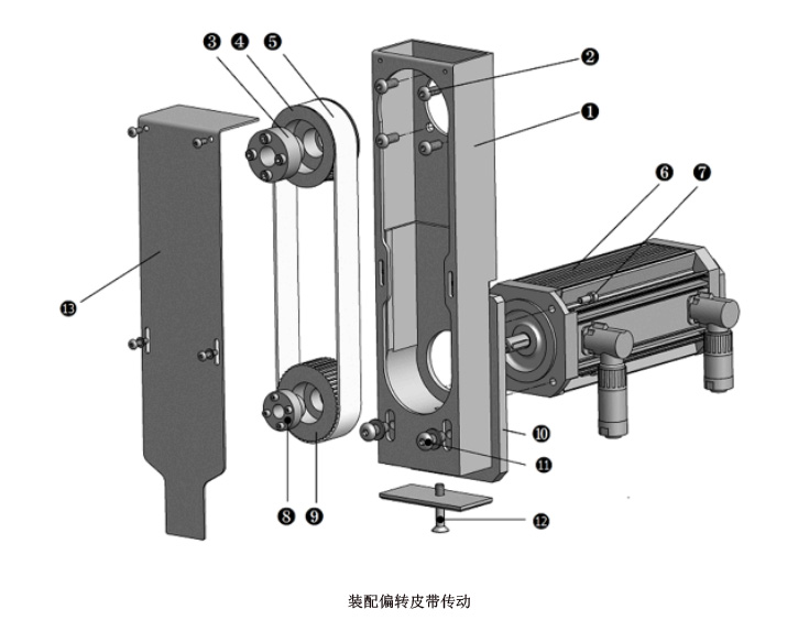 1.用緊固螺釘2將偏轉皮帶傳動1的殼體安裝在線性軸上的所需位置。