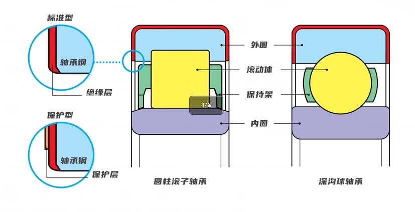 軸承一般都是由鋼鐵制成的,鋼鐵具有良好的導(dǎo)電性,平常情況下,一塊鐵通電并沒有什么,但一旦這塊鐵通電時附有摩擦,有壓力,便會產(chǎn)生火花,火花的熱效應(yīng)會導(dǎo)致該問題區(qū)域的冶金成分和硬度與周圍正常區(qū)域的冶金成分和硬度不同,從而形成白色層、硬化層和回火層,問題區(qū)域最終可能會出現(xiàn)剝落,這就是所謂的電蝕,因此在電機和發(fā)電機等電氣設(shè)備中,往往會因為漏電,而對軸承產(chǎn)生損傷,為應(yīng)對這種情況,
