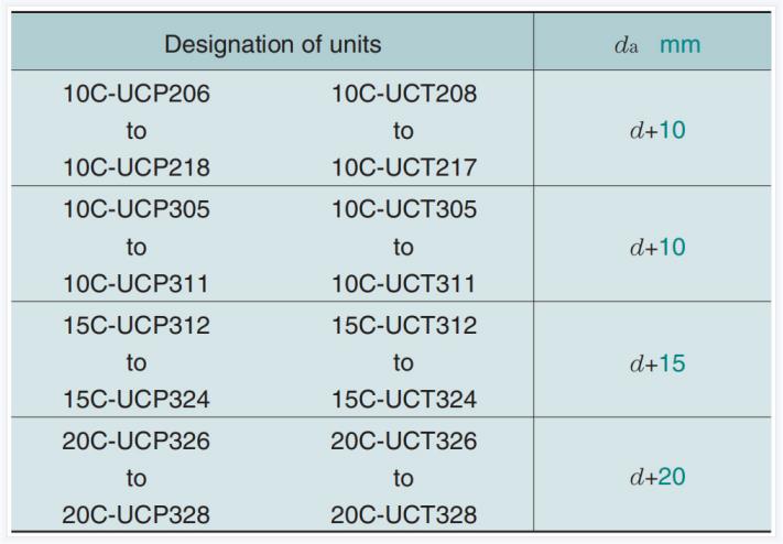 如上圖所示,如果有明顯較大的軸向載荷,這種情況下應(yīng)使用階梯軸,對于帶蓋的軸承座安裝單元,建議將下表中所示的裝置與相應(yīng)直徑的軸一起使用,如果使用的階梯軸直徑小,則建議在階梯肩和內(nèi)圈表面之間使用墊片。