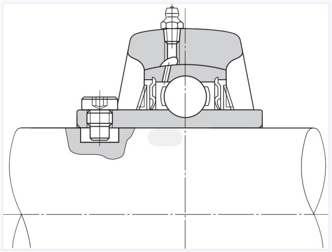 如果沒有自由端軸承,軸承將承受異常軸向載荷,可能導(dǎo)致軸承過早損壞,出于上述目的,需要使用如上圖所示的套筒式軸承單元,但通常采用如下圖所示的方法,在軸上切割鍵槽,以容納特殊的固定螺釘。