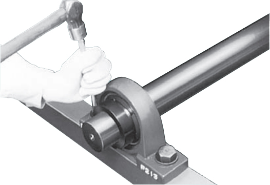 5、鎖環擰緊。將一根桿插入偏心鎖環周圍的孔中,并敲擊桿,使偏心環沿軸的旋轉方向轉動,如上圖所示,最后將偏心鎖環的固定螺釘緊固到軸上,安裝至此完成。