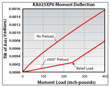 任何軸承的最佳預緊取決于應用,隨著預緊量的增加,載荷下的撓曲量減少,如上圖所示,軸承剛度和固有頻率增加,然而,增加的預緊也會導致更高的摩擦扭矩。