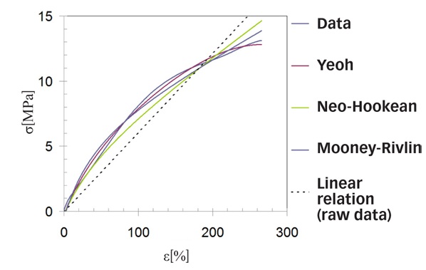 今天進行的許多工程計算都基于這樣的假設,即材料的線性和彈性行為,力和位移線性地依賴于一個常數,即剛度。橡膠材料通常表現為非線性,僅僅定義一個常數來將力與位移或應力與應變聯系起來是不夠的,相反,橡膠需要能夠處理多軸非線性的更復雜的本構模型。