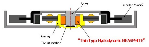 最新商業(yè)化的“薄型流體動(dòng)壓軸承”具有優(yōu)化的流體動(dòng)壓槽規(guī)格及薄風(fēng)扇電機(jī)的槽加工條件,并使用新開(kāi)發(fā)的潤(rùn)滑油,即使在惡劣的工作條件下,也能夠保持流體動(dòng)壓,并由此提供了高水平的靜音和可靠性。