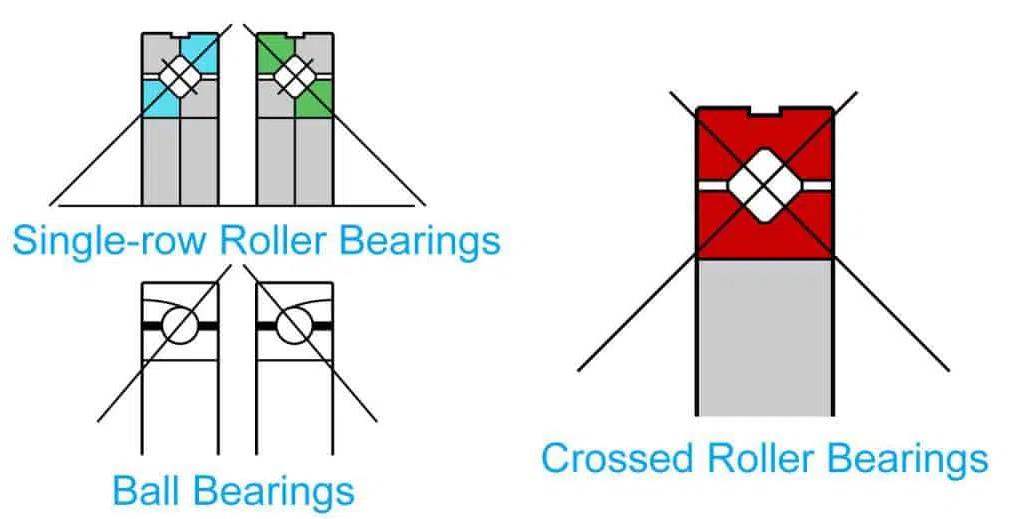 這種滾子的正交排列方式(如下圖所示)大大提升了軸承的額定載荷,與可以承受相同載荷的其他類型軸承相比,橫截面積至少減少了一半,憑借這種緊湊型的設(shè)計(jì),工程機(jī)械能夠更有效地利用應(yīng)用中的空間。