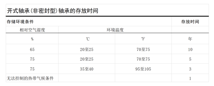 可見,表中所列的是濕度較大的情況下,也可以理解為,這就是我們所說(shuō)的存放時(shí)間的下限。而對(duì)于相對(duì)更為干爽的環(huán)境,軸承的存放時(shí)間會(huì)更長(zhǎng)。