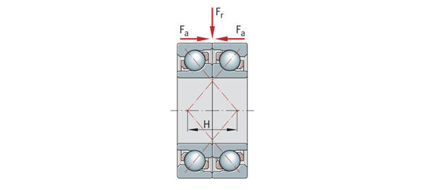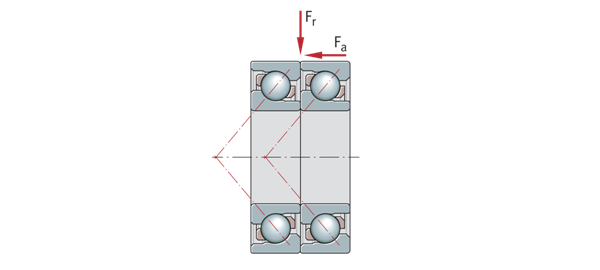 在串聯布置中,接觸線彼此平行地延伸。軸向力均勻分布在兩個軸承上,但只能由軸承組從一個方向支撐。為了支撐來自相反方向的軸向力以及組合載荷,軸承組總是針對另一個軸承進行調整。