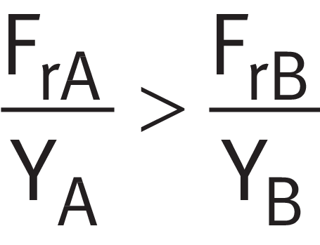 | 2 | FrA/YA > FrB/YB | Ka > 0.5*(FrA/YA - FrB/YB) | Fa = Ka + 0.5*FrB/YB | - |