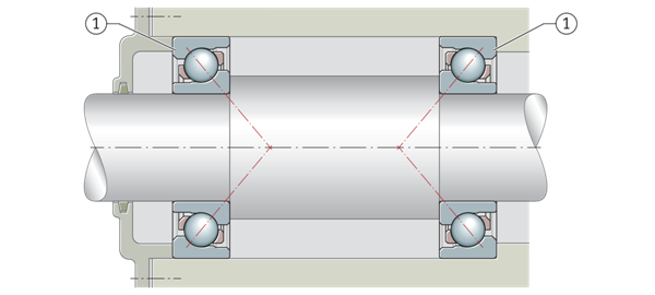調整后的軸承布置 帶兩個單列角接觸球軸承 按X排列安裝的角接觸球軸承 | ![]() |