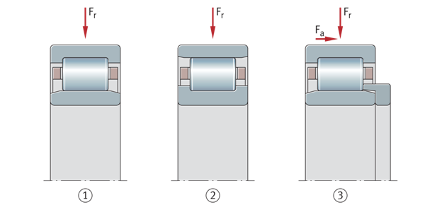 根據(jù)類型,單列圓柱滾子軸承不僅可以在一側(cè)或兩側(cè)支持極高的徑向力,還可以支持較高的軸向載荷: