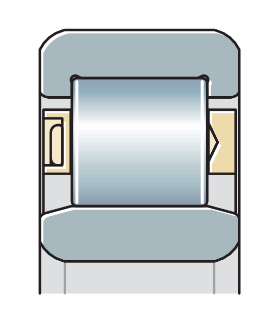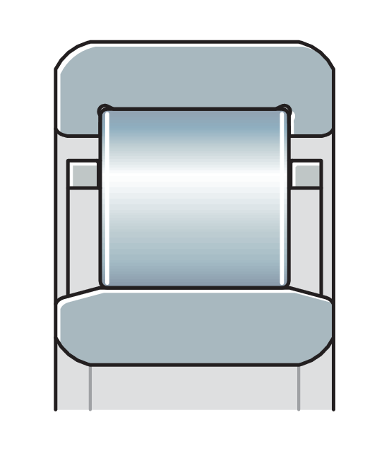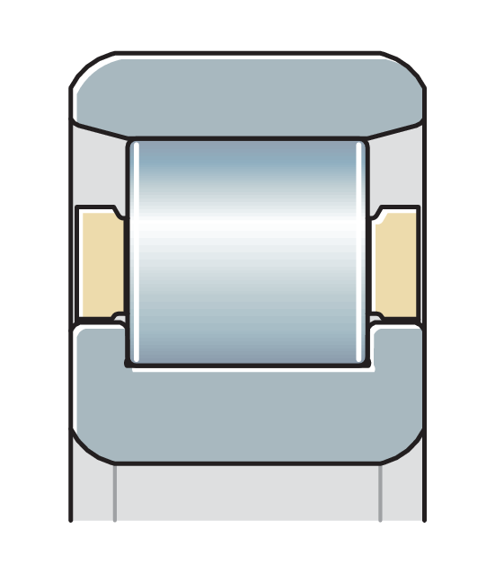 NJ型可以在一側(cè)支持徑向載荷和軸向載荷。如果這種類型與L形截面環(huán)相結(jié)合,它可以在兩側(cè)支撐軸向載荷