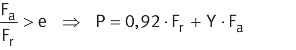 如果不滿足上述條件,除了徑向力Fr外,還存在軸向力Fa,則必須首先為額定壽命計算確定恒定徑向力,該額定壽命計算(與額定壽命相關(guān))表示等效載荷。該力被稱為等效動態(tài)軸承載荷P。