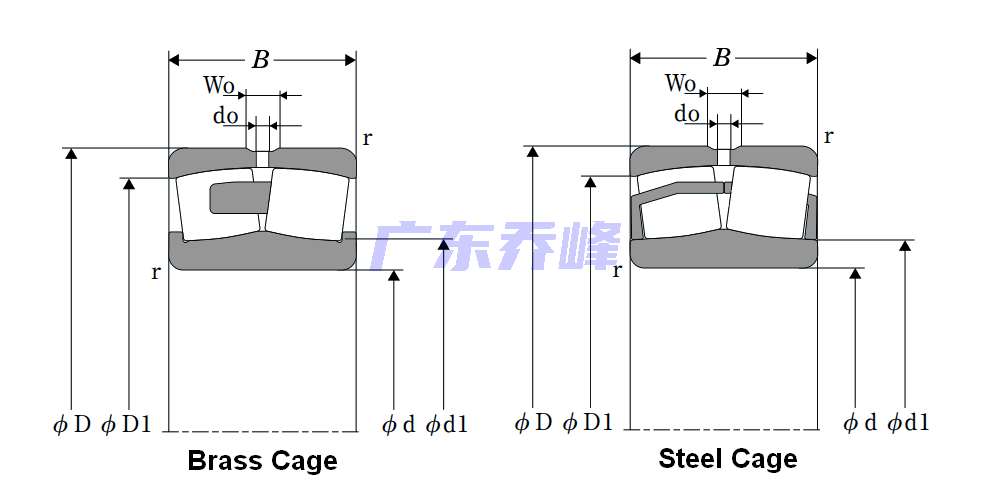 一體式機加工黃銅保持架,抗沖擊性好,剛度大(B型:每排一個機加工黃銅保持架)