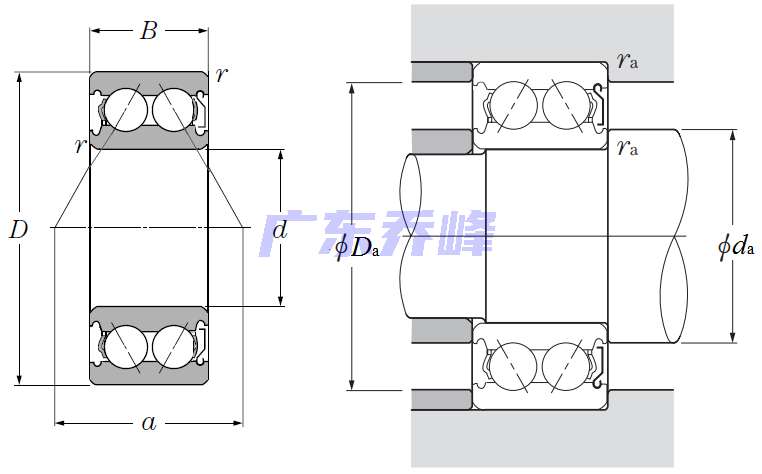 | 雙列角接觸球軸承 - 單面防塵蓋 - 尺寸 | |