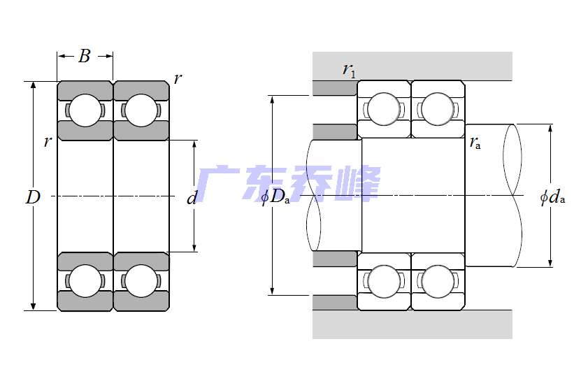 雙列Radial Ball Bearing - 開式 - 尺寸