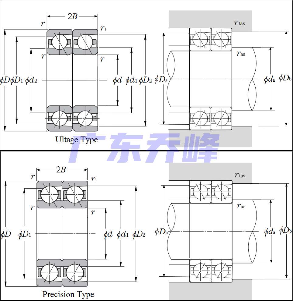 | 雙聯角接觸球軸承 - 串聯配對 - 尺寸 | |