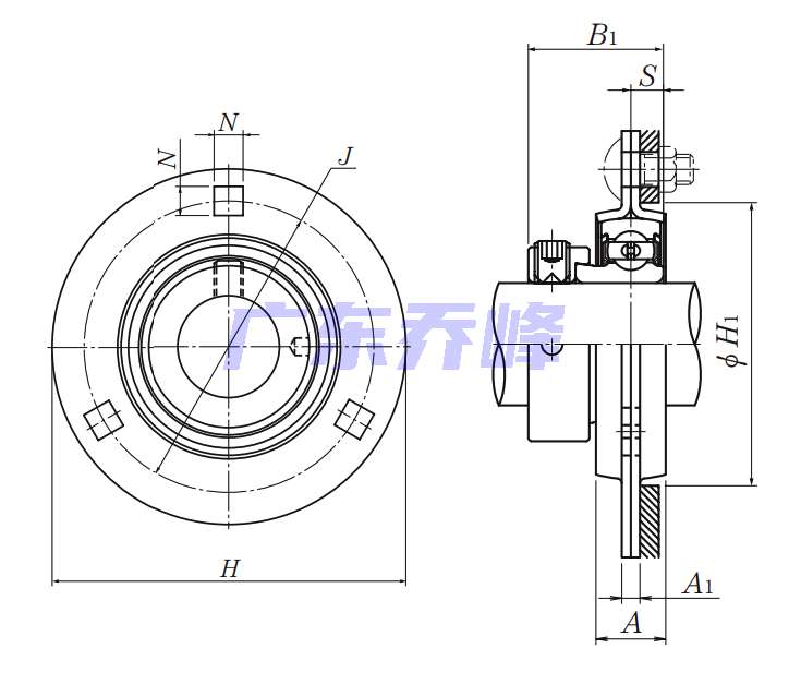 | 三螺栓圓形法蘭式軸承座單元,沖壓鋼外殼,帶偏心鎖緊套,AELPF型 - 尺寸 | |