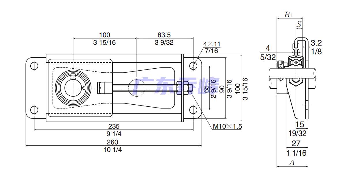 AELPT205-015-10 詳細尺寸,d:23.813mm,b:38.500mm