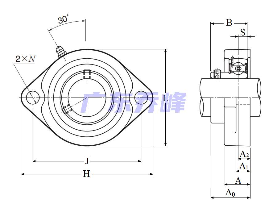 軸承型號:ASFB206-104,雙螺栓菱形法蘭式軸承座單元,鑄造外殼,帶緊定螺釘,ASFB型