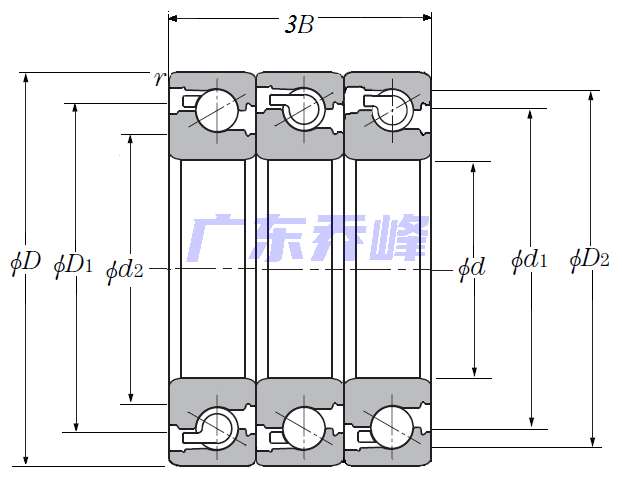 NTN BST40X72-1BDTT軸承 描述:軸承型號:BST40X72-1BDTT,滾珠絲杠用三列推力角接觸球軸承 - DTT配對,開式,三排承受軸向載荷