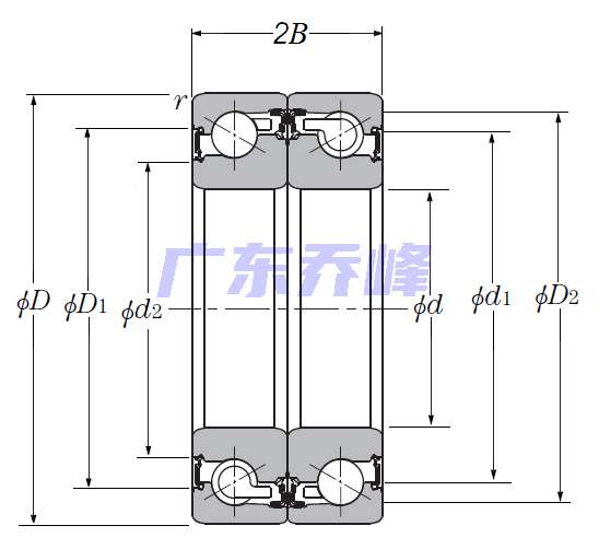 | 滾珠絲杠用雙角接觸推力球軸承 - 面對面配對,雙面密封,一排承受軸向載荷 - 尺寸 | |