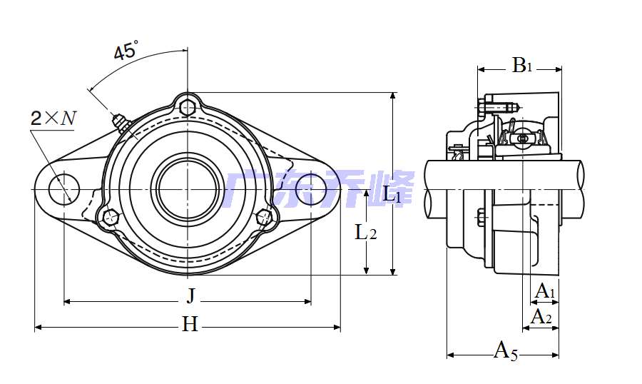 | 類型 | 雙螺栓菱形法蘭式軸承座單元 |