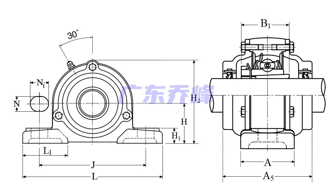 軸承型號:C-UKP206SD1(配合軸承:HS2306),軸承座,帶緊定襯套,鑄造防塵蓋,開式端蓋,UKP型
