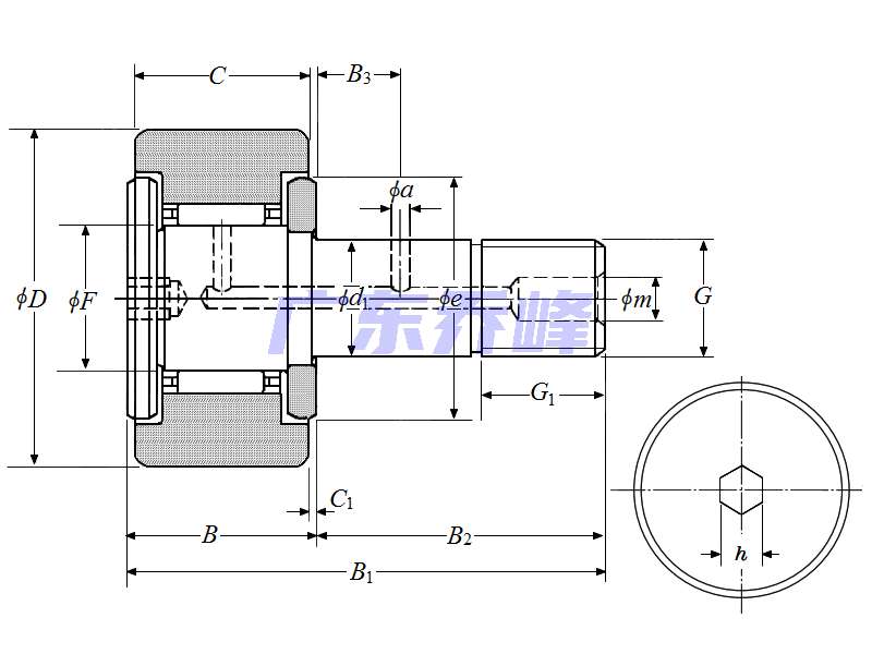 軸承型號:CR20XH,凸輪從動螺柱式滾輪軸承 - 圓柱外徑,CR..H型