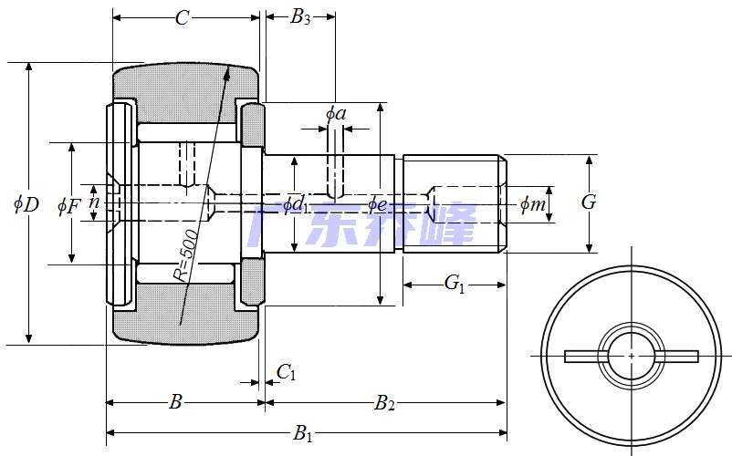 | 凸輪從動螺柱式滾輪軸承 - 球面外圈,CRV型 - 尺寸 | |
