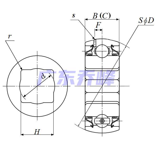 | 重型盤式軸承 - 方孔,球面外圈,3系列 - 尺寸 | |