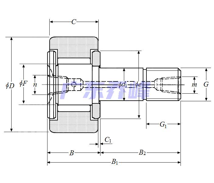 | 凸輪從動螺柱式滾輪軸承 - 圓柱內徑,KRVT型 - 尺寸 | |