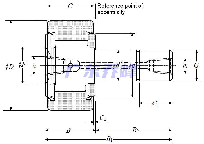 軸承型號:KRVU32XLL,凸輪從動螺柱式滾輪軸承 - 圓柱內徑,KRVU..LL型