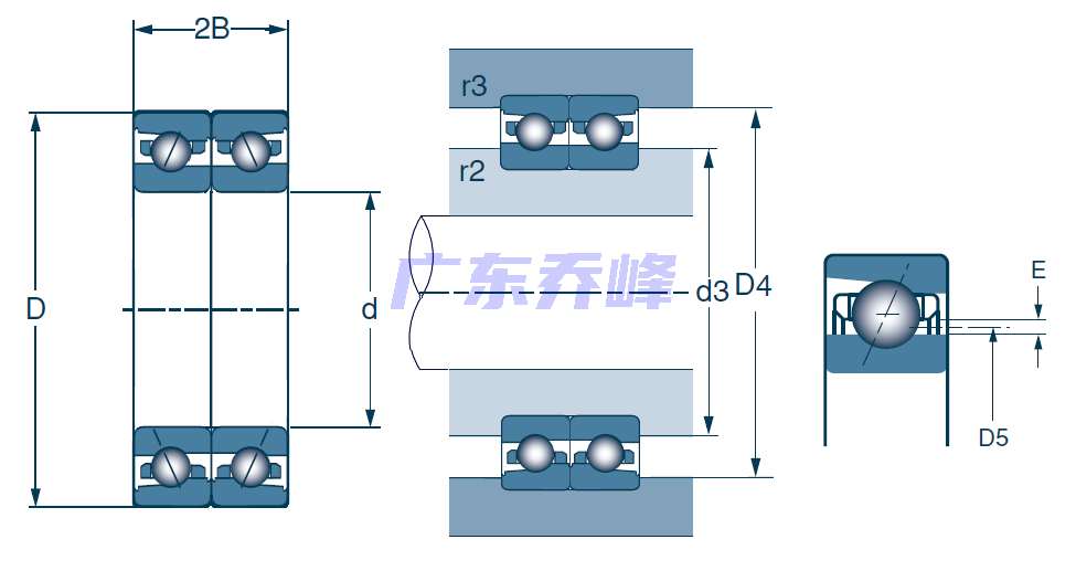 | 高速雙聯角接觸球軸承,高精度 - 萬能平頂軸承 - 尺寸 | |