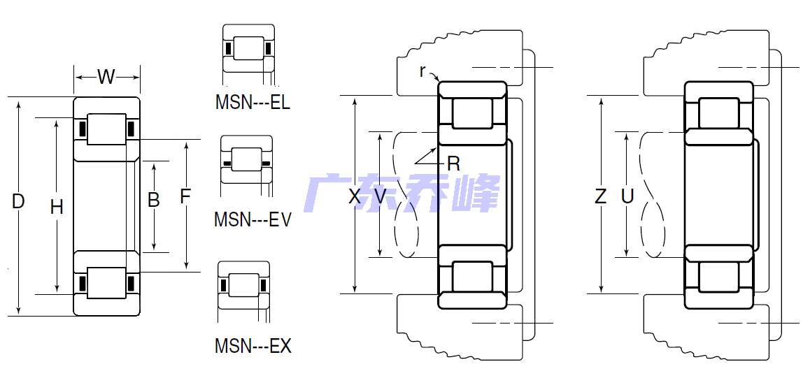 MSN:M:NTN BOWER產(chǎn)品,標(biāo)準(zhǔn)公制尺寸系列,S:帶一個短擋邊的內(nèi)圈,N:內(nèi)圈擋邊