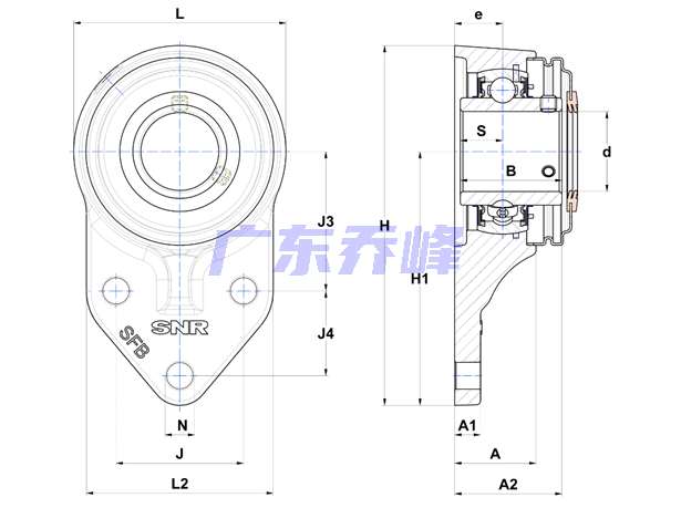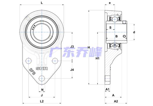 | 三螺栓法蘭式軸承座單元,不銹鋼外殼,帶緊定螺釘,SUCFB型 - 尺寸 | |