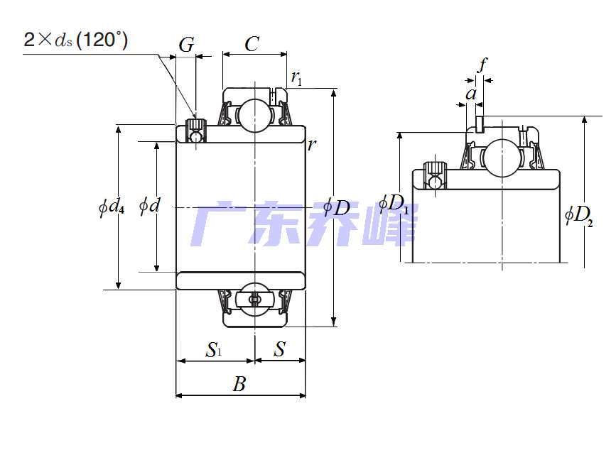 | 帶緊定螺釘的外球面軸承,寬外圈 - 圓柱內徑,帶止動環 - 尺寸 | |