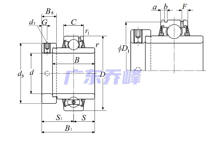 | 帶偏心鎖緊套的外球面軸承,寬外圈 - 圓柱內徑,帶止動環(huán)槽 - 尺寸 | |