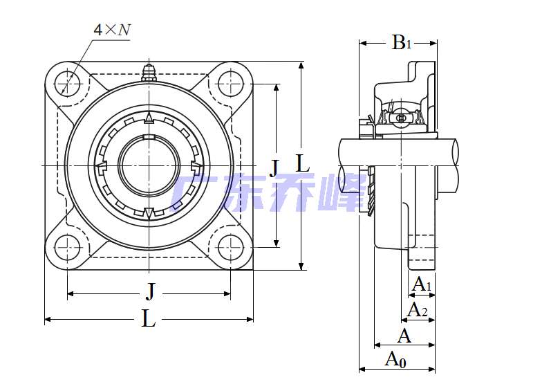 類型 四螺栓方形法蘭式軸承座