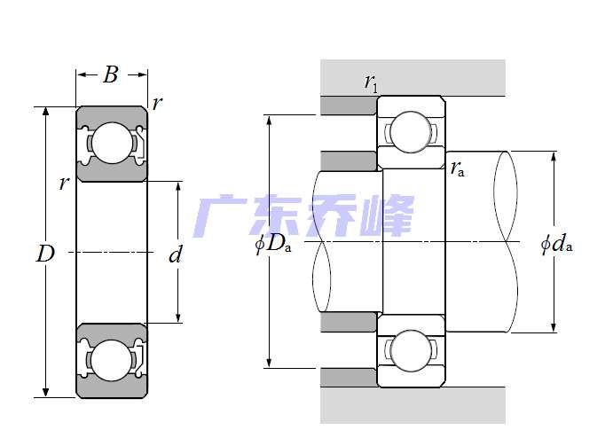 | 單列深溝球軸承 - 單面防塵蓋 - 尺寸 | |